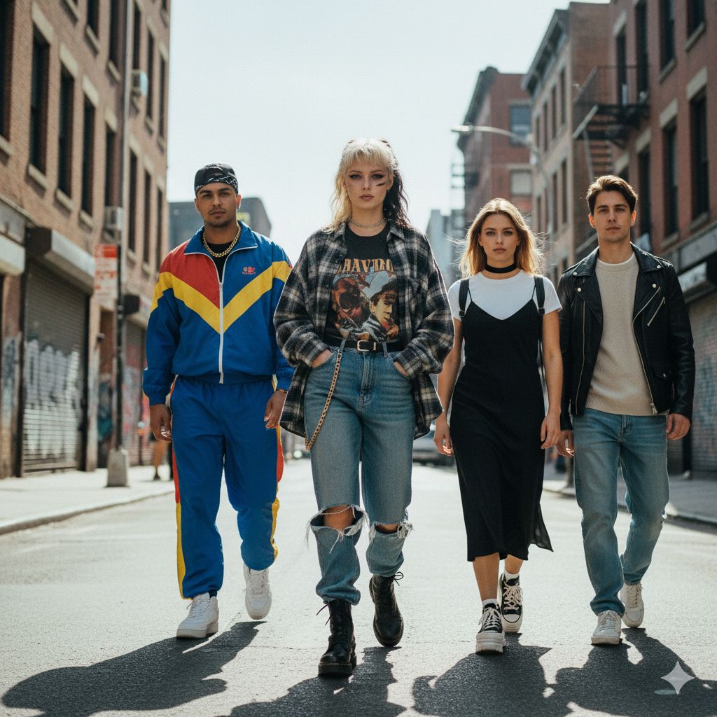 90s fashion was heavily influenced by the burgeoning hip-hop culture, which brought oversized silhouettes, sportswear, and bold branding to the forefront. Artists like TLC, Salt-N-Pepa, and Aaliyah defined this look, making it a powerful statement of urban style.